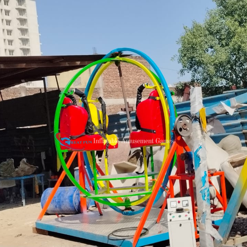 The Human Gyroscope Ride, also known as a 360 Gyroscope Ride or Space Gyroscope Ride, is a thrilling amusement attraction designed to give riders the sensation of zero-gravity rotation. Its a popular attraction for adventure parks, fairs, amusement zones, and even corporate events.